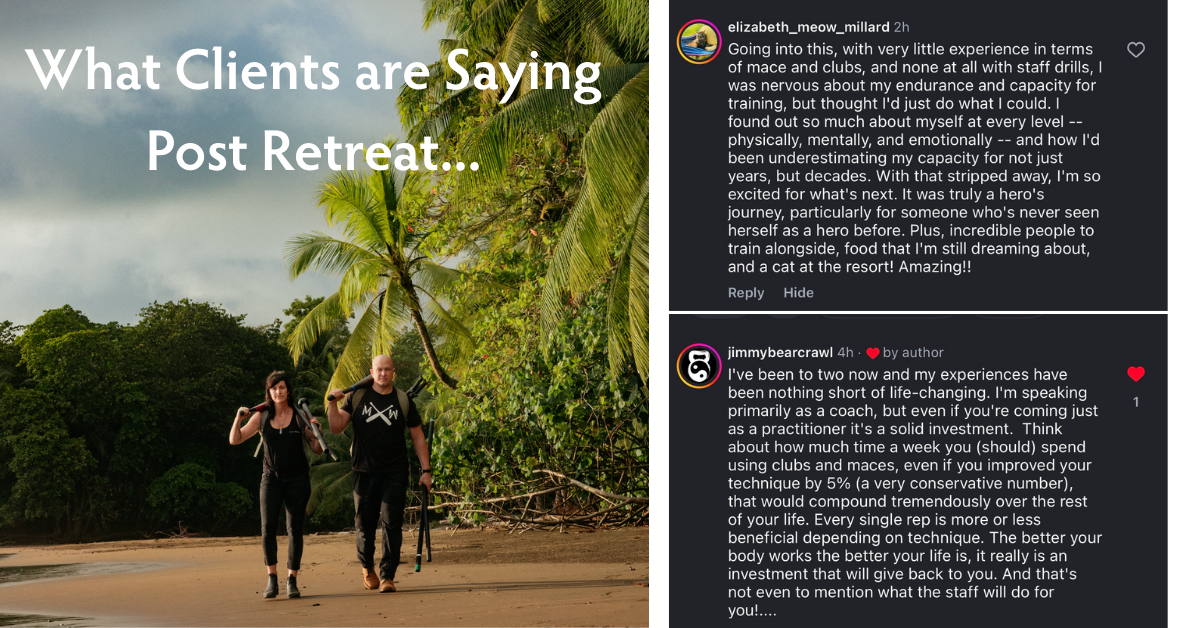 You finally get to refine your form, train on the beach & in a beautiful private yoga studio with like-minded people, and understand the “Why” behind training with Clubs & Mace.
